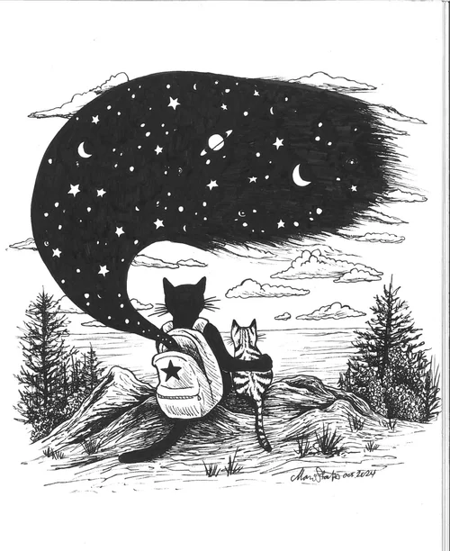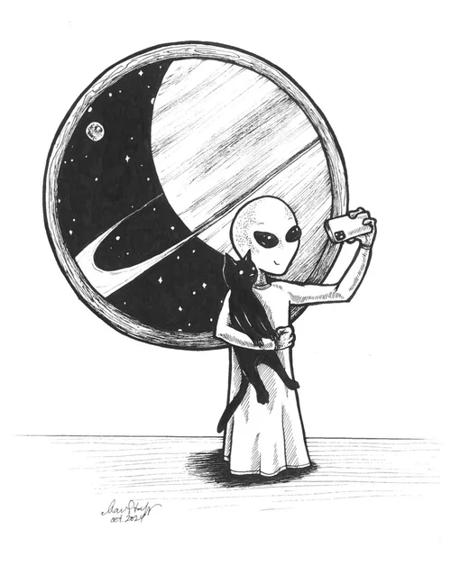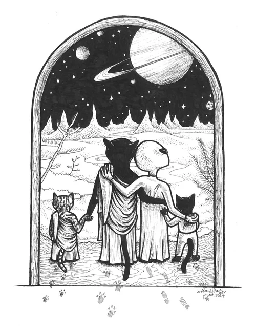 I really enjoyed following the adventures of these grey aliens and their cat companions, characters that were inspired by my love of cats, the cosmos/universe, and of course, aliens/non-human intelligence!